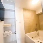 سيستمتع الزوار براحة الحمام المزود بمجفف الشعر والروب والنعال في مكان الإقامة. ستجد أيضًا حوض استحمام سبا والمرحاض المنفصل.